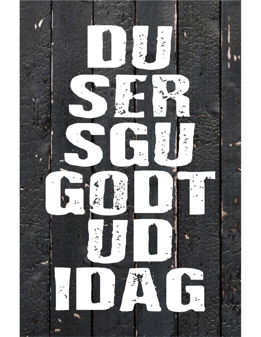 Skiltet er trykt som plankeværkbaggrund og farverne passer godt til de moderne, med et udtryk af graffiti, genbrug og tilfældighed. Skiltet fås også i helt sort med hvidt tryk.